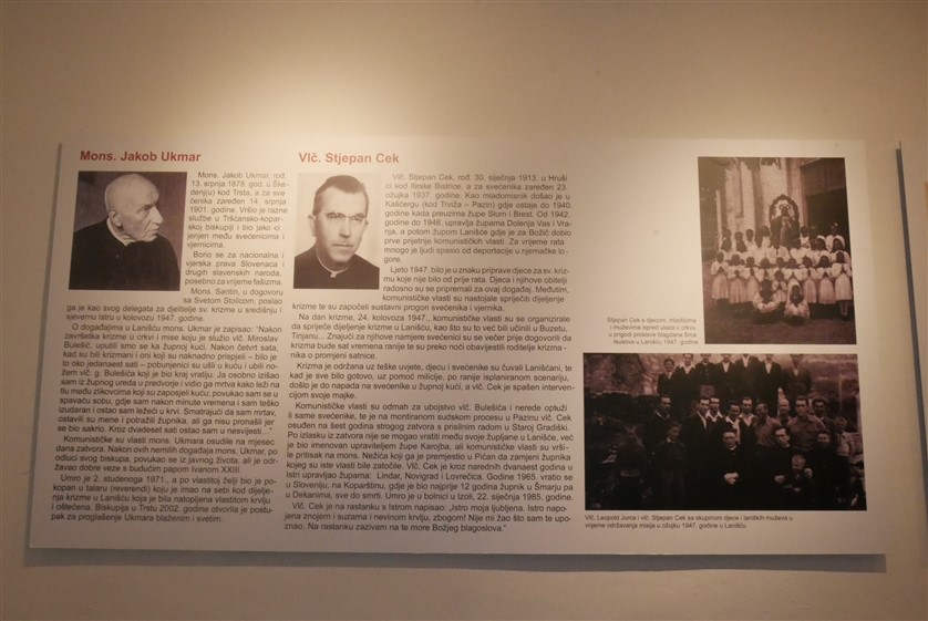 Jedan od eksponata je i komadić blaženikovog kolara koji je okrvavljen u trenutku mučeništva, izložen je u umjetničkom drvorezu koji je djelo Mate Žmaka Matešića, svjedoka de visu (po viđenju) laniških događaja, koje je kasnije opisao u knjizi „Krvava Krizma – Lanišće 1947.“
