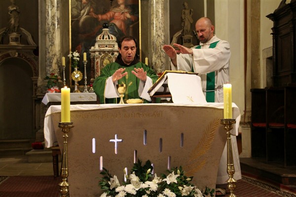 Nakon misnog slavlja uslijedile su litanije i molitva bl. Miroslavu Bulešiću, te klanjanje. Nakon klanjanja uslijedio je ophod hodočasnika oko oltara iza kojeg se nalazi okrvavljena reverenda koju je blaženik nosio u trenutku mučeništva. (Foto: D. Fattorich)